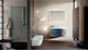 E58 - COMPOSIZIONE COMPLETA 100 cm Top ceramica, Laccato opaco Azzurretto, Fascia Frassino Desert composta da:
