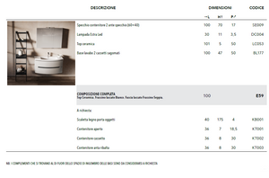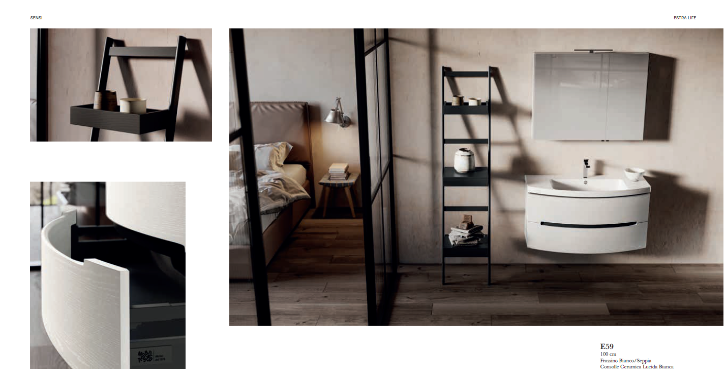 E59 - COMPOSIZIONE COMPLETA 100 cm Top Ceramica, Frassino laccato Bianco, Fascia laccato Frassino Seppia composta da: