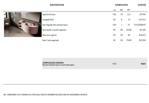 N40 - COMPOSIZIONE COMPLETA 150 cm Top vetro Satinato Cipria, Laccato Cipria opaco composta da: